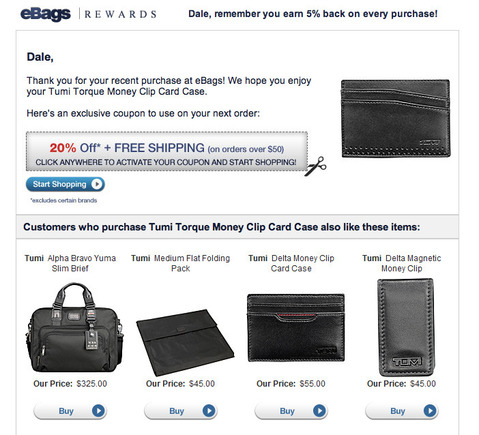 Как обычно, всё самое эффективное лежит на виду. Зарубежный интернет-магазин сумок и кошельков eBags.com уже давно использует этот приём.