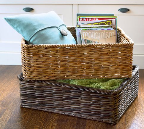 Интернет-магазин "potterybarn.com" продает свои корзины весьма эффективным способом. Они пошли по наиболее правильному пути и показывают свой товар в "конечном виде", т.е. как бы они выглядели уже у вас дома. Любая хозяйка знает, что такое порядок и удобство. На этой фотографии предлагаемые корзины как нельзя лучше сочетаются с этими качествами.