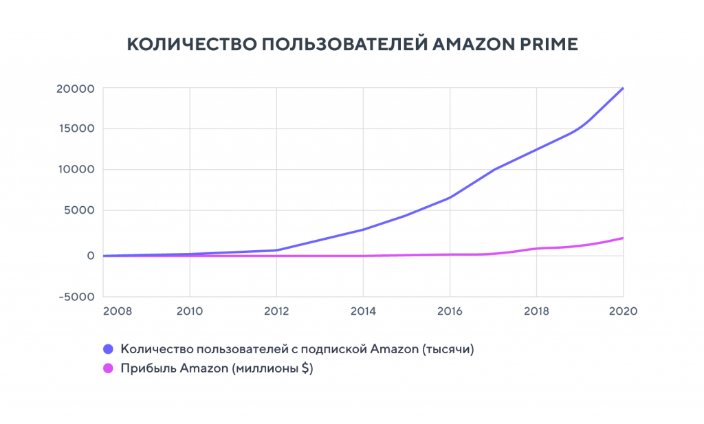 В 2021 году доля Prime в прибыли Amazon составила 32%. С каждым новым миллионом подписчиков Prime доходы Amazon увеличиваются на 1,5% — члены Prime тратят до 130% больше, чем обычные клиенты Amazon. При этом коэффициент удержания подписчиков сервиса составляет 93% после первого года и 98% после двух лет. К слову, во время пандемии масштабные и непрерывные инвестиции в развитие сервиса окупились в виде годового роста на 84%.