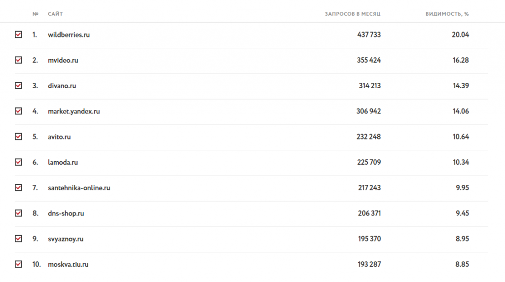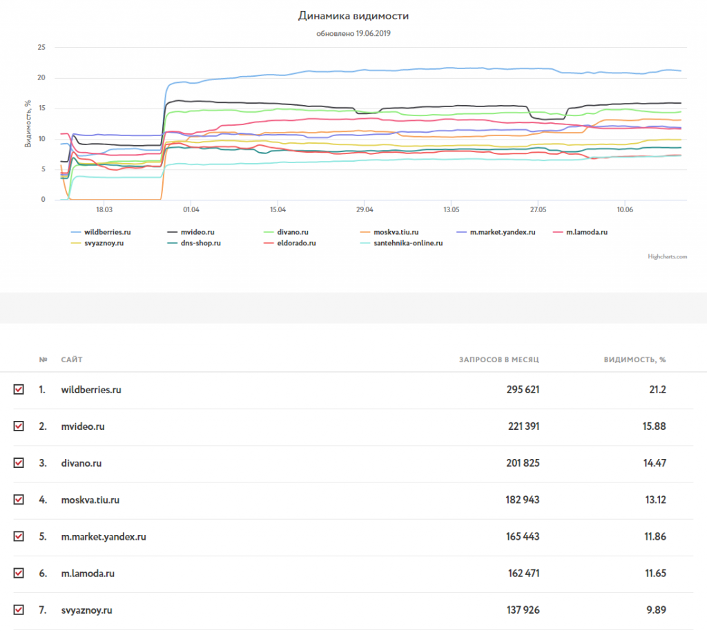 Данные рейтинга формируется автоматически сервисом Seorate на основе коммерческих запросов, связанных с ценой, покупкой и т.д. Запросы формируются отдельно для каждой отрасли и ее сегментов. Например, ecommerce состоит из 9 сегментов: одежда и обувь, бытовая техника и так далее. Показатели рассчитываются на основании региона - Москва. Брендовые запросы не учитываются.