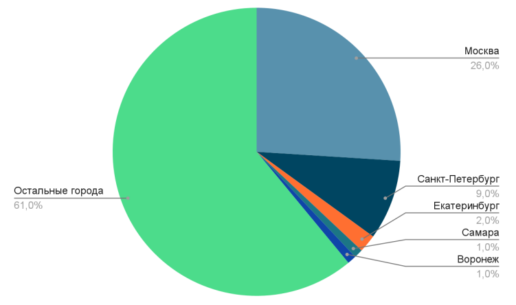 Что касается географии доставки, топ городов и по количеству пользователей и заказов в 2022 году заняли Москва, Санкт-Петербург, Екатеринбург, Самара и Воронеж. Вместе они покрыли 49% от всех пользователей доставки, которая работает в 130 городах.