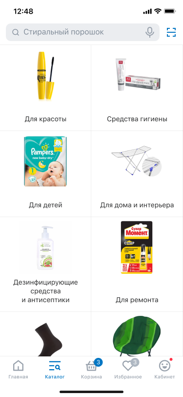 К обычному поиску по каталогу, как на сайте, мы добавили в приложение возможность голосового поиска. Это экономит время пользователям и соответствует паттернам взаимодействия с мобильными устройствами: последние несколько лет популярность голосового поиска и голосовых ассистентов растёт.