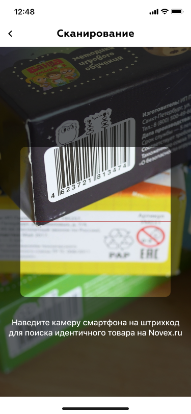 Для этого достаточно отсканировать штрих-код товара и, если идентичный товар есть в каталоге Novex, он появится в поиске и сразу же будет доступен к заказу.
