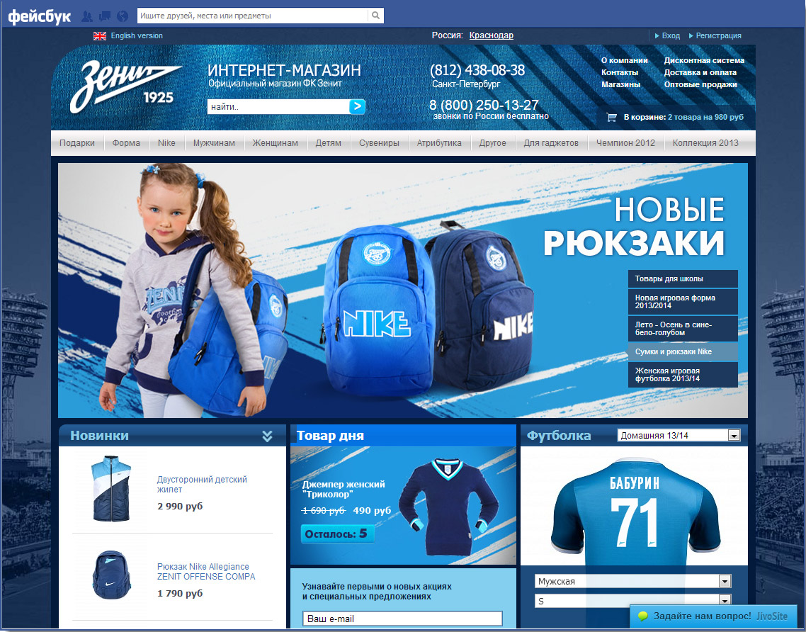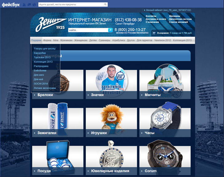 У футбольного клуба «Зенит» очень правильная задумка — открыть интернет-магазин в социальных сетях, где клуб собрал уже больше миллиона подписчиков в группах в «Facebook», «ВКонтакте», «Одноклассниках» и Twitter. Естественно, встал вопрос монетизации такой огромной аудитории, поэтому основной целью проекта стало создание версии интернет-магазина в двух первых социальных сетях.
