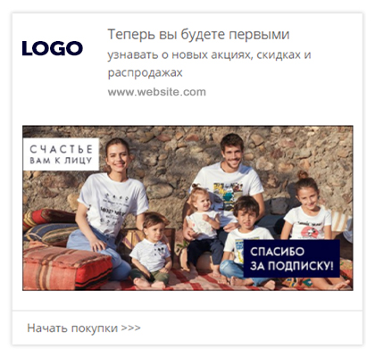 Приветственное сообщение – этот тип уведомлений мгновенно доставляется посетителю после подписки и помогает перенаправить подписчика на нужную страницу или акцию.