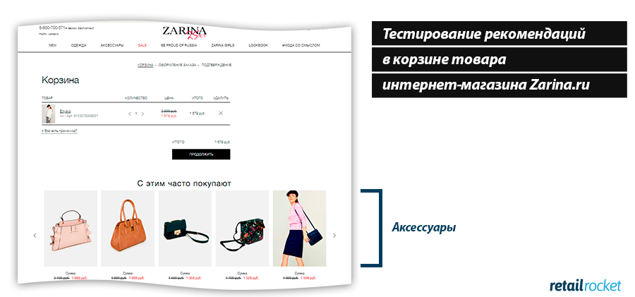 Все посетители сайта Zarina.ru случайным образом делились на три сегмента, каждый из которых видел свою версию корзины: