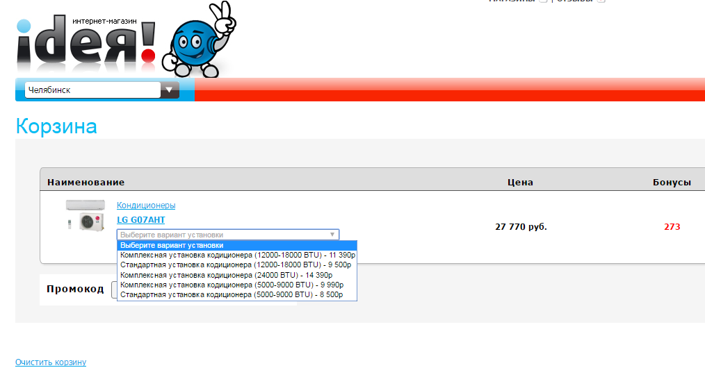 В то же время интернет-магазин Techport предлагает установку кондиционеров пользователю сразу после того, как тот положит товар в корзину, в специальной всплывающей карточке.