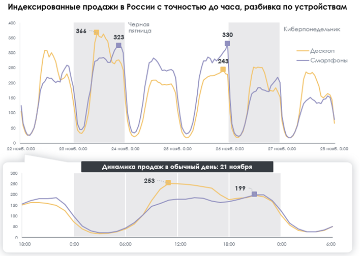 В Черную пятницу рост продаж происходит на всех устройствах, но в разное время: