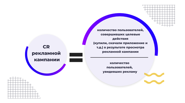 Например, при подсчете CR рекламной кампании, формула может выглядеть таким образом: