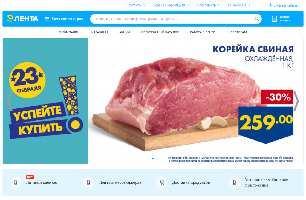 Основная площадка Lenta.com внешнего вида не поменяла.