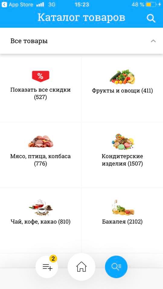 В приложении можно посмотреть все доступные товары сети, их цену, наличие, а также следить за акциями и скидками.