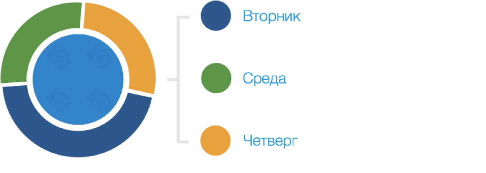 Напомним, это статистика по всей географии РФ. Конечно, в каждом городе картина может быть немного другая, но какой-то причине, начиная с осени среда немного сдает позиции и пропадает из рейтинга ТОП3, за исключением ноября 2016го.