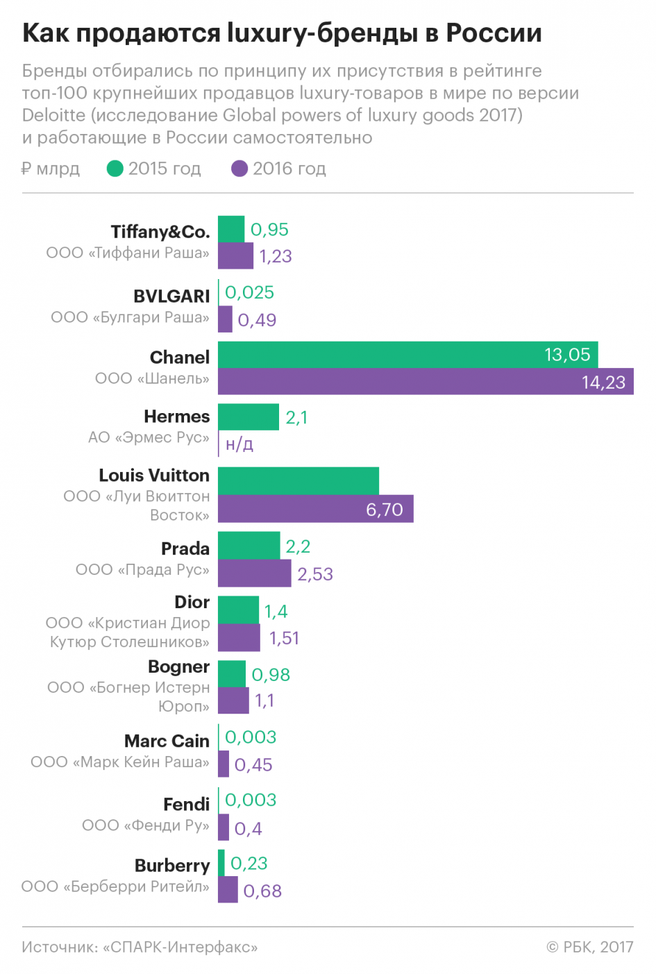 Продажи Chanel в мире сократились на 9%, а в России, напротив, выросли на 9%. Продажи Bogner в 2016 году должны были сократиться на 5%, прогнозировала компания, при этом в России они выросли на 12%.
