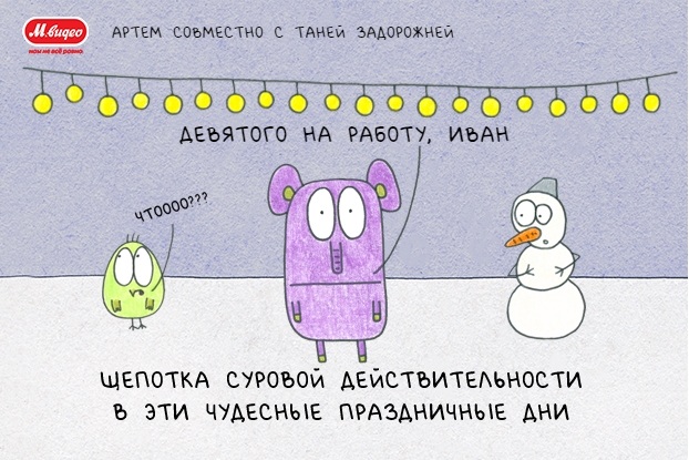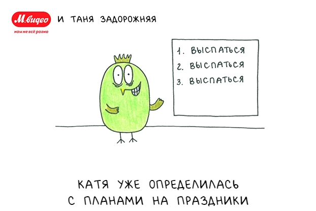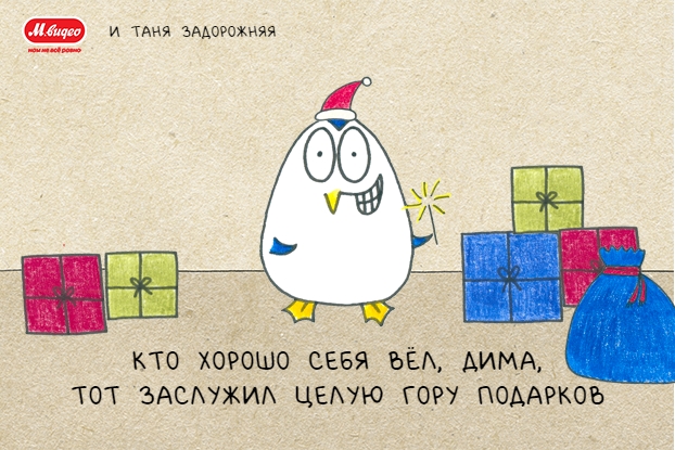 Все чаще компании, работающие онлайн, привлекают клиентов не только рекламными кампаниям, но развлекательными проектам, напрямую не связанными с основным бизнесом. Например, компания «М.Видео» уже четвертый раз предлагает пользователям создавать смешные открытки с героями иллюстратора Татьяны Задорожней и делиться ими в социальных сетях.