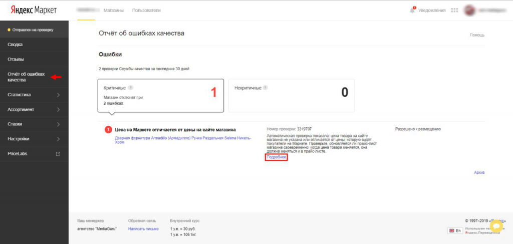 В "Яндекс.Маркете" уточняют, что новое правило распространяется только на автоматические проверки. Если отсутствие на сайте магазина цены из последнего загруженного на Маркет прайс-листа обнаружит не робот, а сотрудник службы качества, такая ошибка по-прежнему будет считаться критичной.