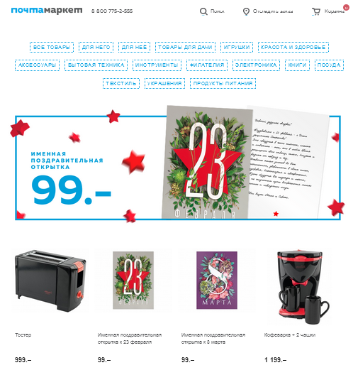 Почта России выпустила новые сезонные каталоги к 23 февраля и 8 марта для продажи товаров на собственной торговой онлайн-площадке. Официальным партнером проекта выступает Отто Групп Россия.