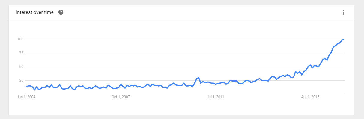 Как вы видите на графике, любезно предоставленным Google Trends, это направление быстро растет в последние два года.