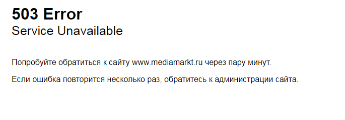 Между тем, сайт магазина упал сразу после начала распродажи и недоступен до сих пор. Он выдаёт попеременно ошибки 500 и 503.