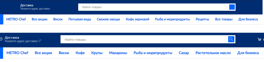 Интересно, что на главной странице сайта на днях появились отдельный разделы "Сахар", "Крупы", "Макароны" и "Подсолнечное масло". Как следует из скриншота магазина портала web.archive.org, ещё 21 февраля таких разделов на сайте не было.