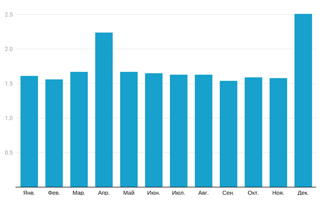 Однако и помимо этого мы видим сезонные скачки в разные месяцы. И в каждом регионе периоды этих скачков могут быть разными. Обычно такие сезонные всплески повторяются из года в год. А прогнозировать такие всплески и вовремя к ним готовиться помогают большие данные.