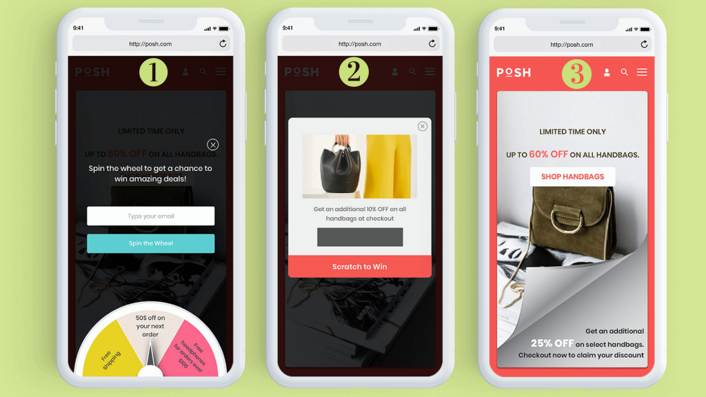 Пролистывая ваш мобильный сайт, пользователь как бы дает вам подсказку, что им движет любопытство. Благодаря специальному купону Scratch to Win вы можете простимулировать его интерес, предложив ему стереть верхний слой и получить купон с персональной скидкой.
