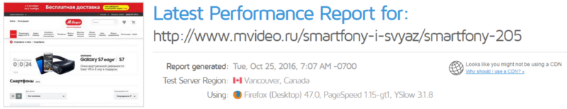 Общие моменты : эти инструменты загружают с помощью браузера страницу (замеряя время и объём) и разбирают его структуру (по массе факторов — кешируемые заголовки, оптимизированы ли картинки (сжатие JPEG, масштабирование больших картинок в браузере, используется ли быстрый CDN, сжаты ли огромные JS и т.д.)