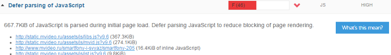 - Из 1.47Мб общего размера страниц — почти половина — JavaScript, рендеринг которого замедляет выдачу страницы.