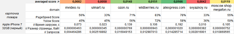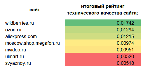 Начнём с конца — что получается на выходе: рейтинг онлайн-магазинов по техническому качеству сайтов.