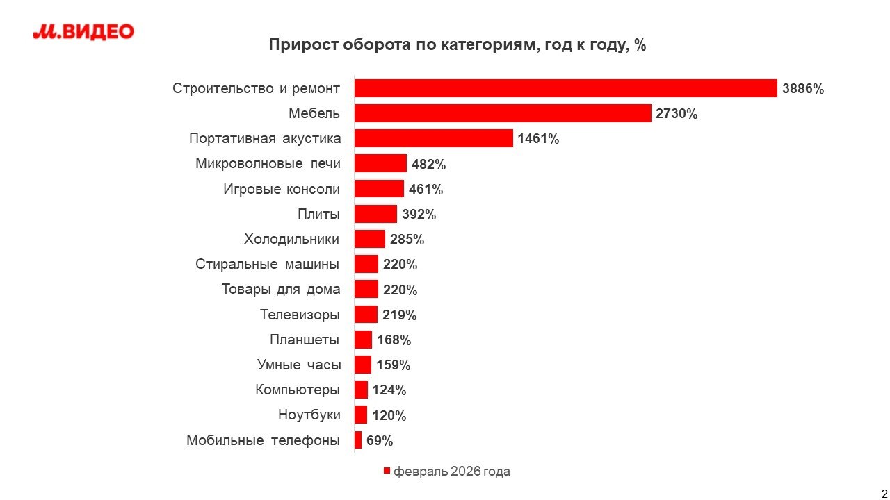 Месяцем ранее, по итогам января 2026 года, оборот маркетплейса "М.Видео" составил 2,1 млрд рублей (+124% год к году). Тогда в компании отмечали устойчивый рост с осени 2025 года и высокий спрос не только на технику, но и на новые категории - от портативной акустики и проекторов до товаров для дома и мебели, которая быстро вошла в число самых динамичных направлений.