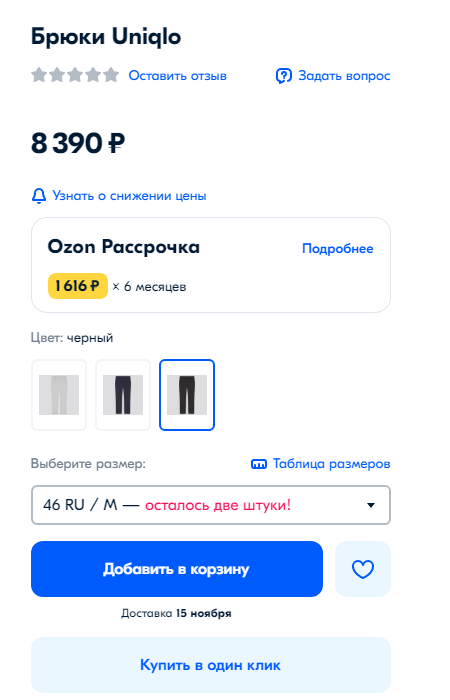 Вещи, очевидно, везут "под заказ", так как срок доставки составляет почти месяц (на момент написания статьи магазин предлагал привести товар 15 ноября). При этом в карточках указано, что число товаров ограничено, а каких-то фасонов или размеров и вовсе нет в наличии.