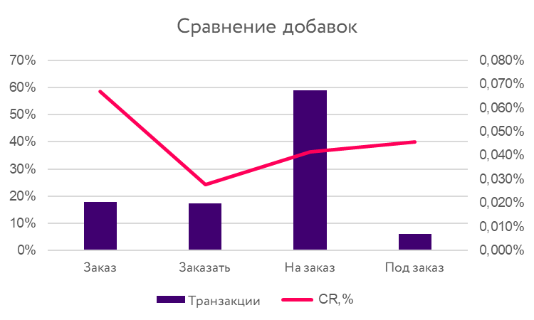 Оказалось, что ключевые слова с добавкой «на заказ» приносят больше конверсий, чем моноприставка «заказ».