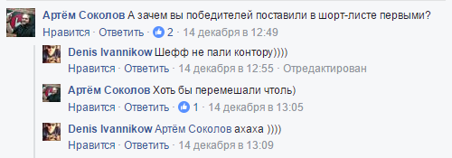 Редакция E-pepper.ru отдаёт должное невероятному прогностическому дару директора по маркетингу InSales Артёма Соколова, который ещё 14 числа предсказал, как распределятся победители.