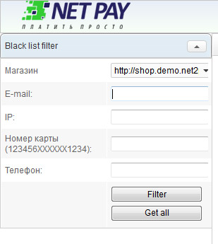 Админ-панель Net Pay также позволяет создавать и редактировать черные списки покупателей по IP, номеру телефона и номеру карты.