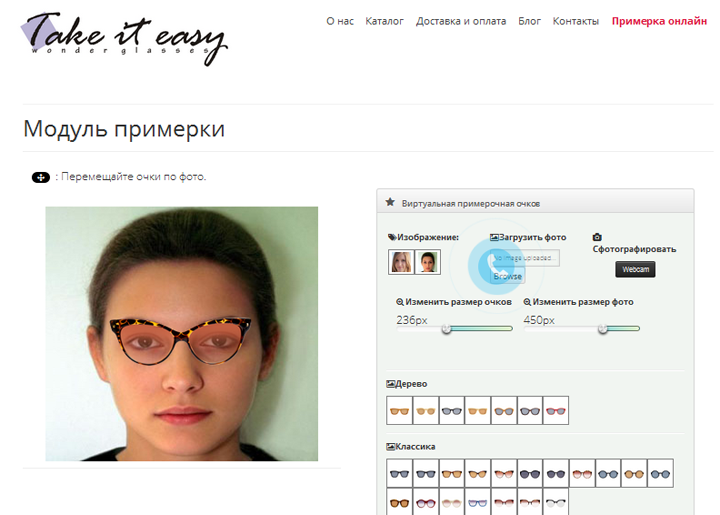 - Появился и новый интернет-магазин солнцезащитных очков и оправ Take It Easy. Примерить и заказать очки можно сразу на сайте магазина через «виртуальную примерочную».