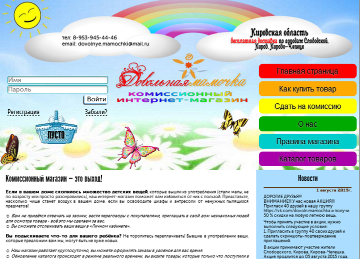 - В городе Слободском в Кировской области открылся комиссионный интернет-магазин "Довольная мамочка". Его сотрудники приедут к вам домой, составят договор комиссии и заберут ставшие ненужными вещи. А после сфотографируют и выложат на сайте.