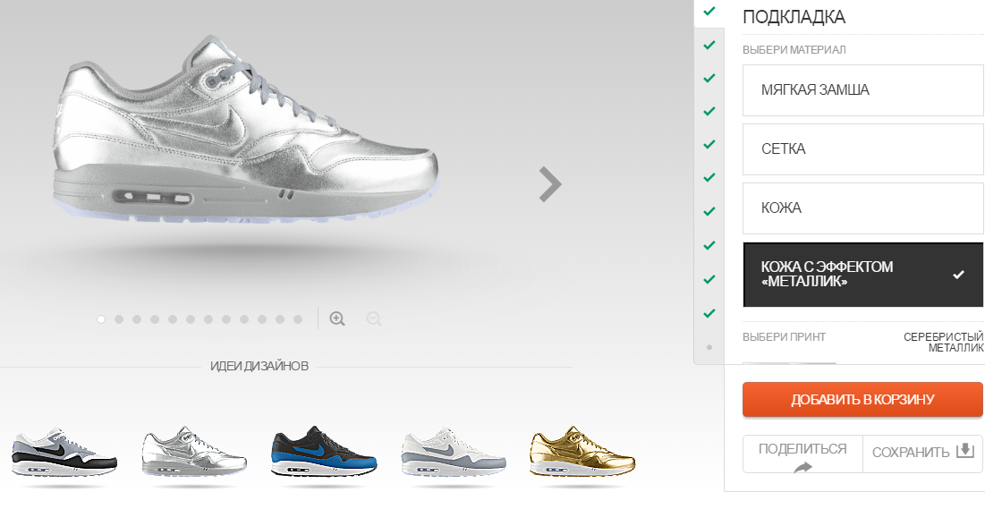 «NIKEiD – это возможность рассказать свою историю, создав уникальную пару кроссовок на основе любимого силуэта. Кастомизировать можно не только повседневные кроссовки, но и беговые модели, футбольные бутсы, кроссовки для тренинга, баскетбола, скейтбординга, а также линейку Jordan. Кроме сервиса NIKEiD, новый функционал nike.com позволит покупателям получить доступ к расширенному ассортименту спортивной обуви и экипировки, а также к эксклюзивным линейкам и дополнительным цветам. Доступный ассортимент будет постепенно расширяться и меняться в зависимости от сезона», - говорится в сообщении компании.
