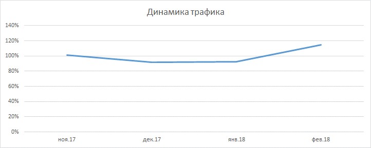 Динамика трафика - доля месячного трафика от среднего трафика за ноябрь 17- февраль 18