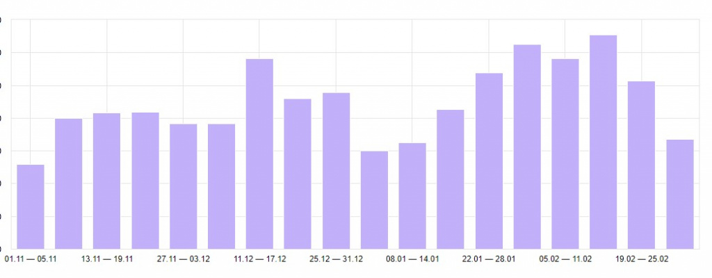 Исследование проводилось на базе сайтов, зарегистрированных в сервисе (а их десятки тысяч). Были собраны данные по трафику и стоимости клика в контекстной рекламе за два предыдущих новогодних периода - с ноября 17-го года по февраль 18-го и с ноября 16-го года по февраль 17-го.