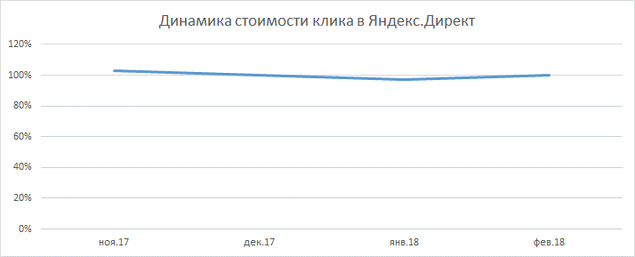Динамика средней стоимости клика в Яндекс.Директ - доля от средней стоимости за ноябрь 17- февраль 18