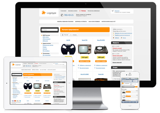 - более 200 готовых шаблонов интернет-магазинов, включая интернет-магазины с адаптивным дизайном;
