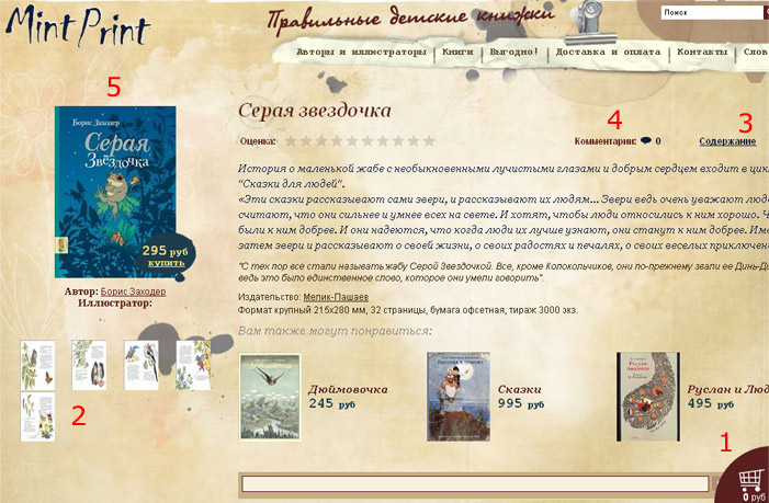 4 - В какой части сайта находится в данный момент посетитель? (тоже самое относится и к следующей странице товара). Добавьте "хлебные крошки" по типу Главная - Книжки от 5 до 7 - Книга. Посетителю в разы будет проще ориентироваться по страницам магазина.