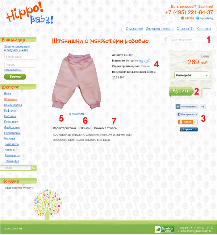 mirvla Отправлен 24.09.2011 в 16:30 Поздравляем с позитивными изменениями! Артем hippobaby.ru Отправлен 24.09.2011 в 13:14 Карточку товара тоже изменили http://hippobaby.ru/ mirla Отправлен 21.09.2011 в 14:38 Да уж, попробуем без него. Artem Bandin Отправлен 21.09.2011 в 10:04 Учли пожелания касаемые шапки, пока не ясно действительно ли это ошибки, вообщем будем проверять. Виджет рекомендаций вместо отзывов добавили. Под разделами каталога указали цены “от … руб.”