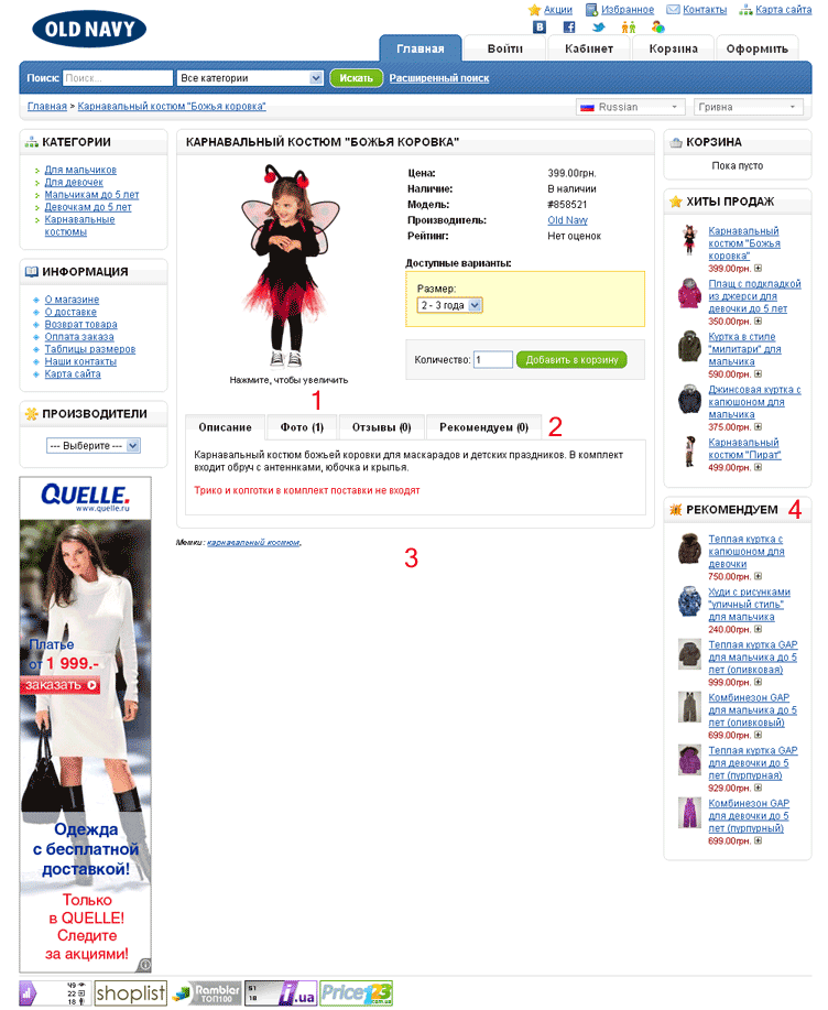1 - Совершенно неуместный в этом месте блок, сбивающий внимание и концентрацию. Кнопки социальных сетей гораздо эффективнее применять на страницах товара. Если использовать их в том виде (переместив в иное место), то логичнее их было сделать ведущими на страницы вашего магазина в социальных сетях.