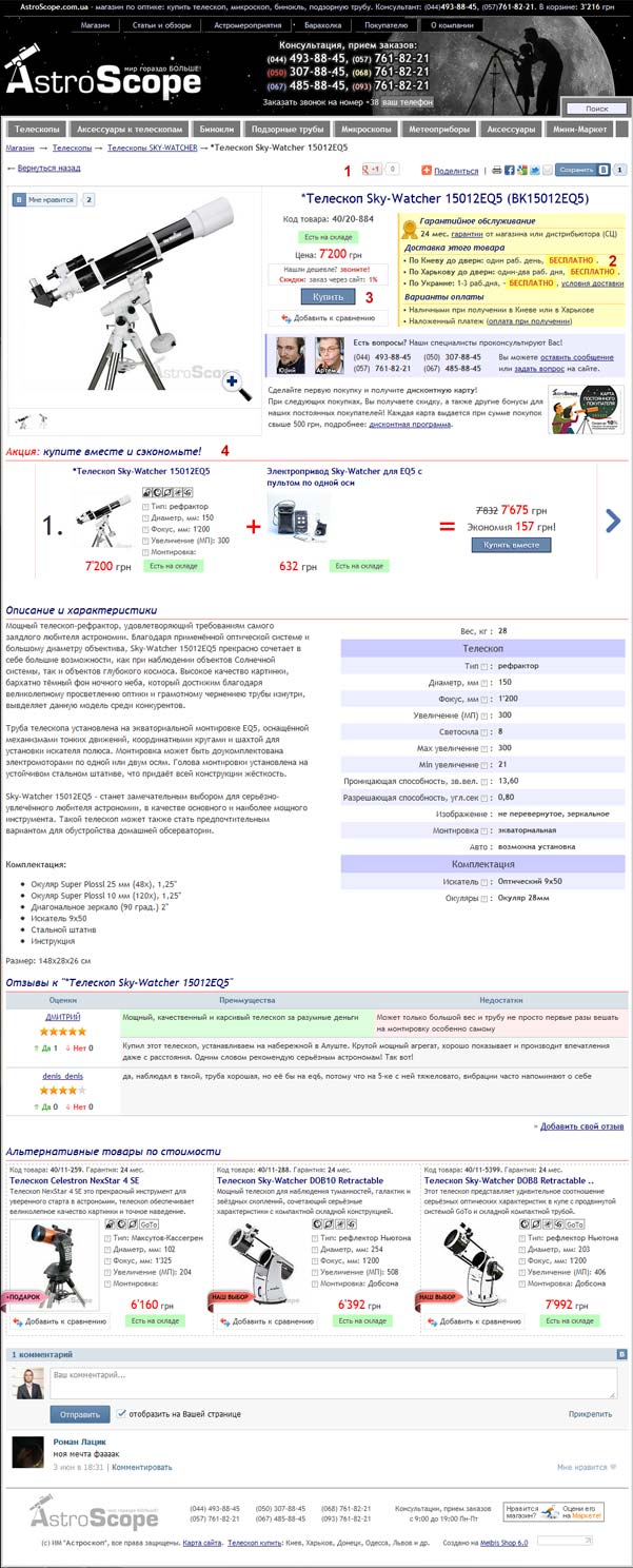В целом, перед нами неплохой и качественный интернет-магазин, который уверенно снабжает телескопами добрую часть Украины. Но, всё же, есть некоторые моменты, над которыми стоит еще поработать, чтобы привести его дизайн и интерфейс в должный и удобный для пользователя вид.