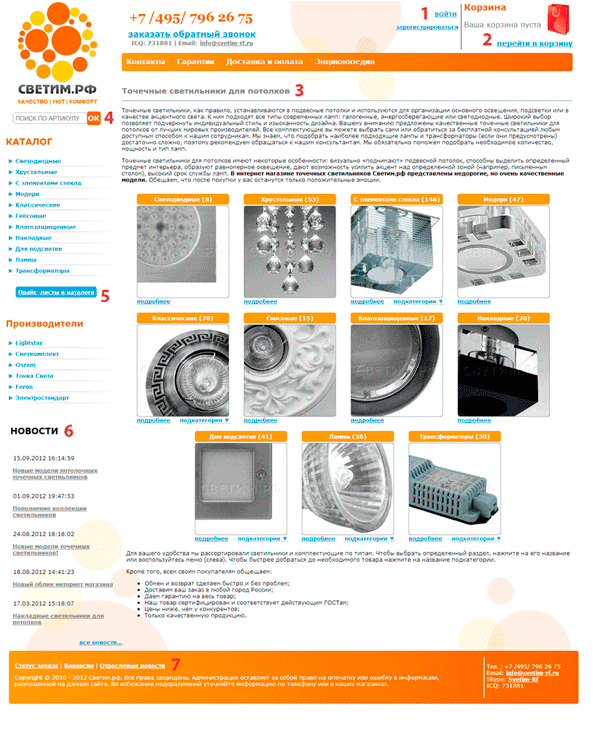 7 - Совершенно незаметный блок, содержащий один из таких важных элементов, как "Проверить статус заказа", который вообще целесообразнее вынести в верхнее горизонтальное меню на более заметное место.