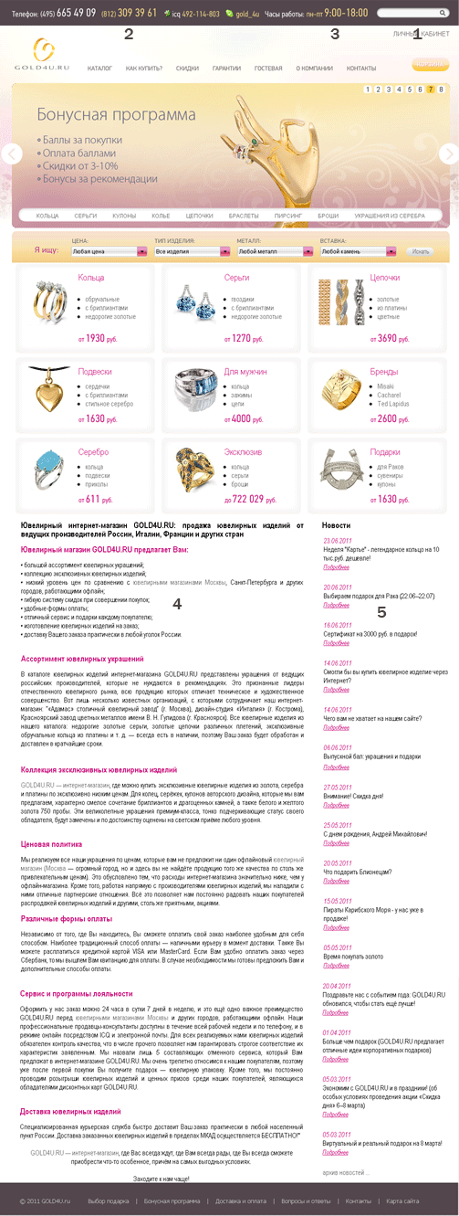 Продолжаем рубрику "Оценка юзабилити интернет-магазинов", и сегодняшний проект, который мы рассмотрим, это интернет-магазин ювелирных изделий Gold4u.ru. Постовалова Александра, директор по его развитию, попросила сделать небольшую оценку после проведенного у них редизайна. Кстати, оценку юзабилити вашего ИМ можно попросить в разделе форума Оценка юзабилити интернет-магазина. Мы постараемся выполнить ее в кратчайшие сроки.
