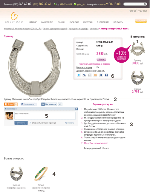 Общее впечателение: качественно и удобно. Но доработать есть что. Пару советов напоследок: если принимаете только оплату наличными на месте или при самовывозе, заодно предложите своим покупателям бесплатную проверку изделий на чистоту золота на месте (что у вас в офисе, что у курьера). Также хотим сообщить, что сайт весьма криво отображается в IE, хотя это возникает у большинства сайтов и это уже не ваша ошибка. Как уже снял с языка комментатор Designtolife - добавьте сертификаты на продаваемую продукцию.