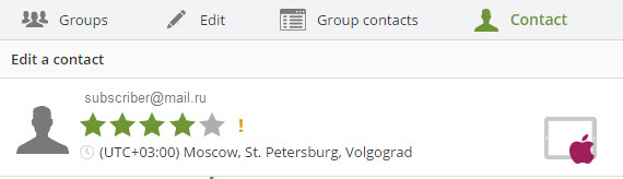 Критерии для начисления рейтинговых баллов определяются, исходя из информации о подписчиках, хранящейся в Офсис и относящейся к их профилю или поведению с отправленными письмами или на сайте интернет-магазина. Офсис рассчитывает индивидуальное количество баллов, зарабатываемое в соответствии с задаваемыми критериями, и отображает результат в профиле подписчика в виде суммы накопленных баллов (или, например, в виде звездочек):
