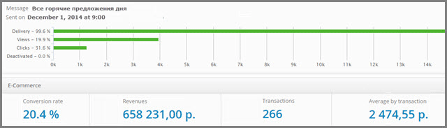 Новый модуль позволяет отобразить статистику по конверсии, среднему чеку и оборот по каждой отправленной email кампании на одной странице с традиционными показателями открываемости и кликабельности.