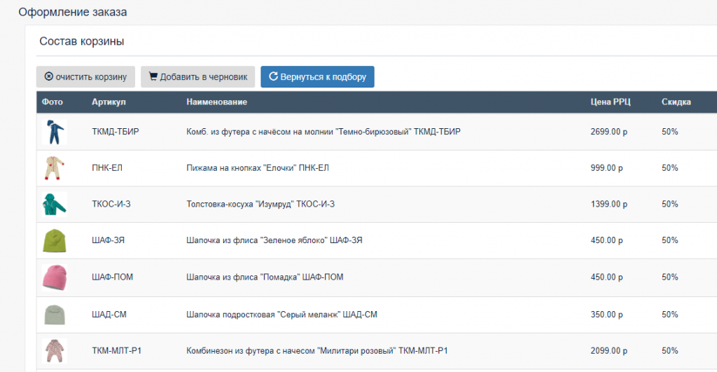 Оптовая корзина и черновики корзин